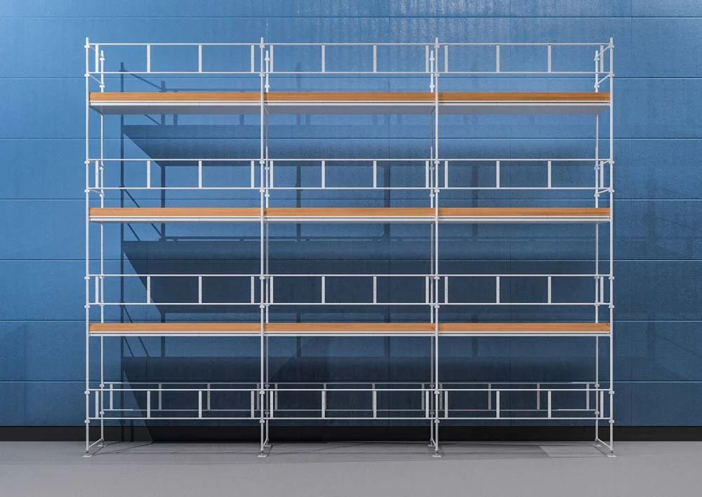 HAKI Ram har en enkel konstruktion som har snabbmonterade, slutna ramar. De lätta aluminiumplanen är staplingsbara och de självstagande skyddsräcksramarna kräver inget diagonalstag. Detta gör att det går snabbt att få ställningen på plats.