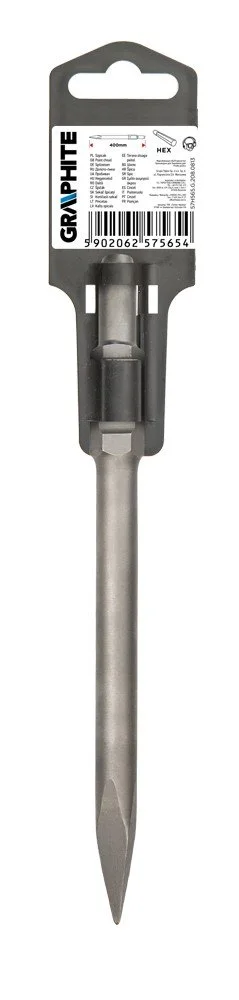 Spetsmejsel med sexkantsfäste är tillverkad av härdat stål och är perfekt för mekanisk bilning av hål i betong, sten och tegel.