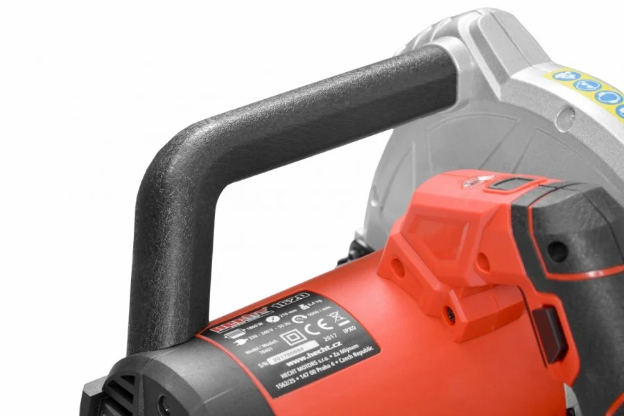 Eldriven handhållen cirkelsåg (1800W) med laser. Bladdiameter 210 mm. Max skärdjup 73 mm.