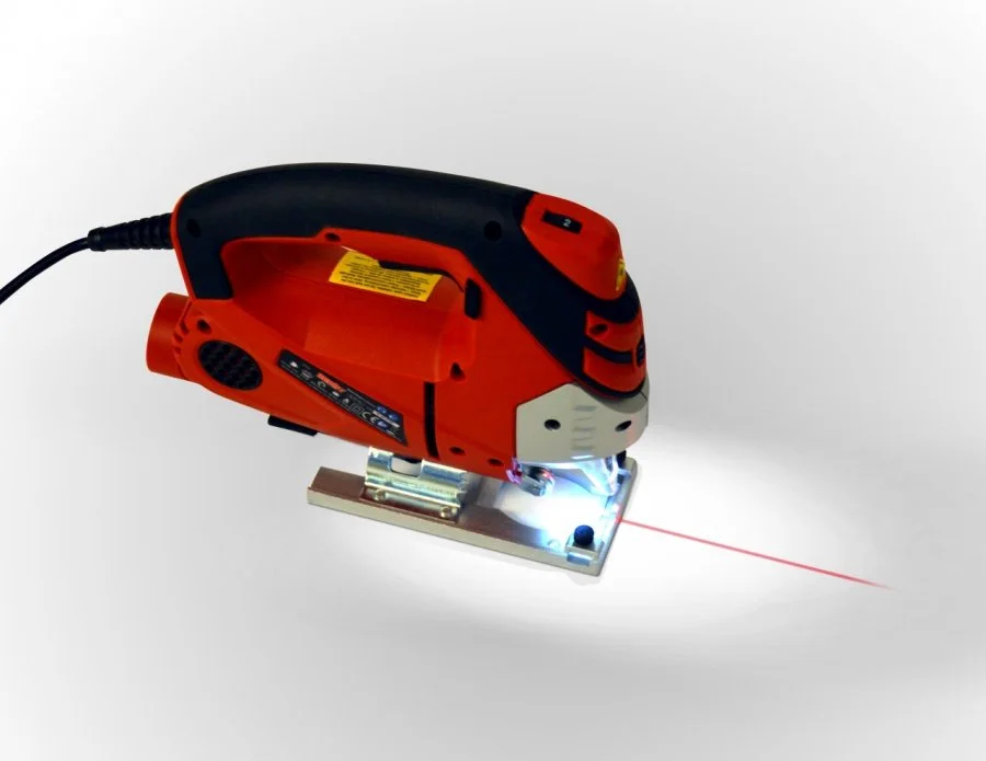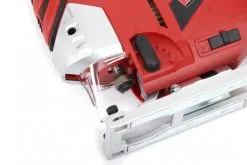 Eldriven sticksåg (810 W) med anslutning för dammsugare. Rekommenderat max sågdjup – Trä; 80 mm, stål; 10 mm.