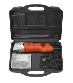 Att byta ut redskapet tar bara några sekunder. Kommer i en förvaringslåda med plats för maskinen och alla tillbehören.
