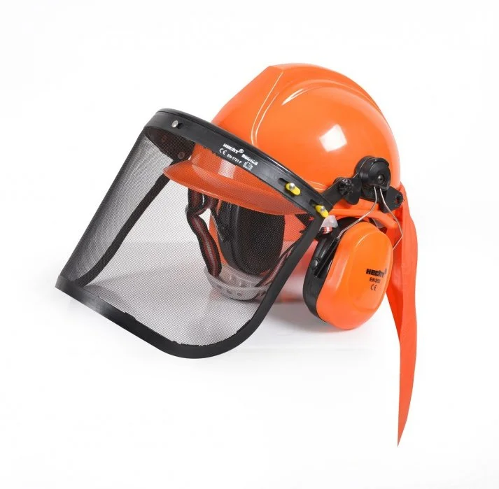 Skyddshjälm med ansiktskydd och hörselskydd.