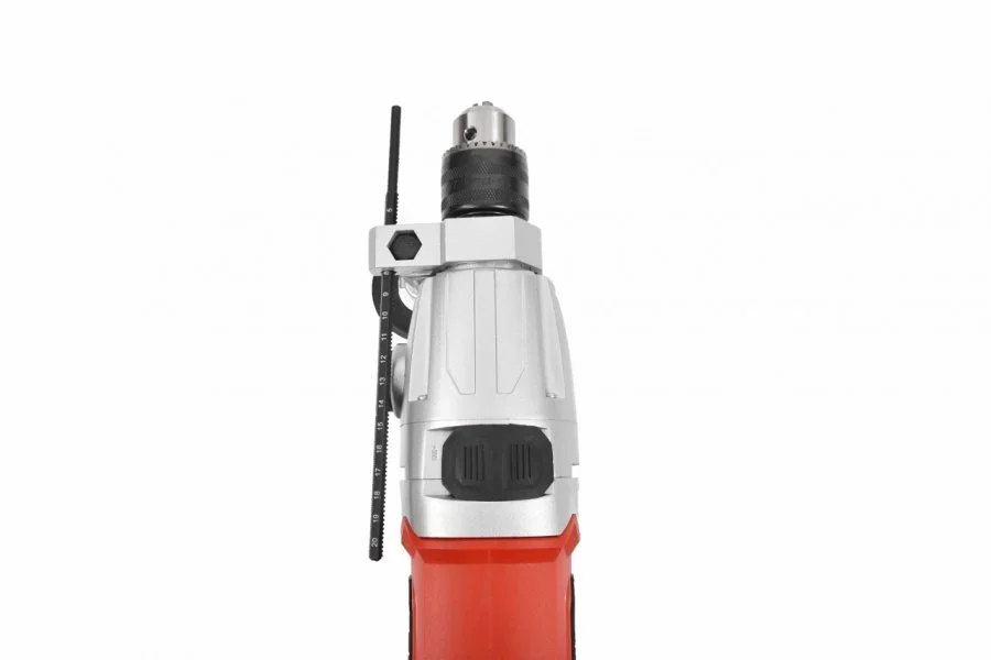 Eldriven slagborrmaskin (1200 W) med nyckelchuck, extrahandtag och borrdjupmätare.