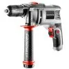 Eldriven slagborrmaskin med justerbar hastighet, nyckelfri chuck, extrahandtag och borrdjupmätare.