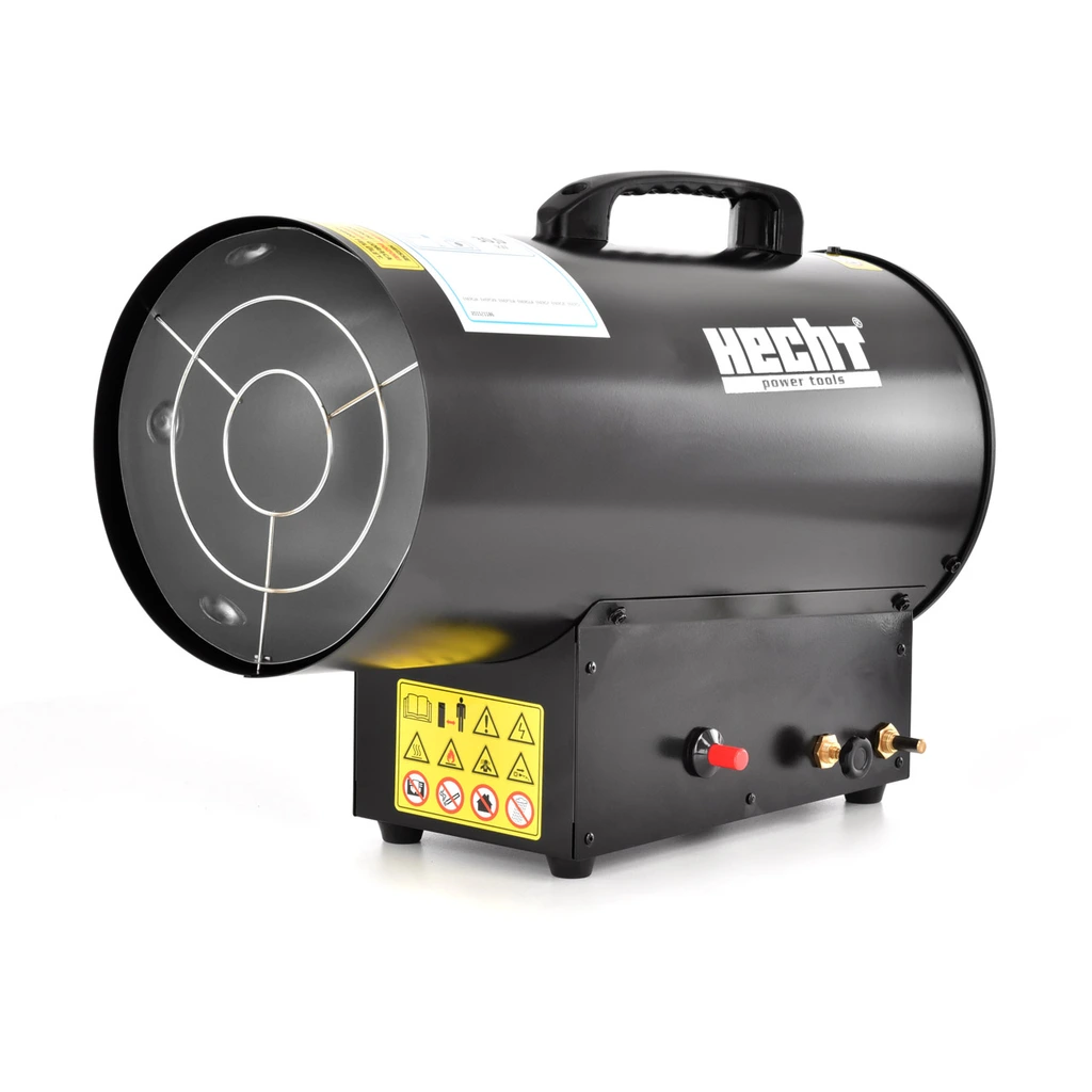 Denna gasvarmluftsturbin är lämplig för uppvärmning på byggarbetsplatser och i andra välventilerade utrymmen.