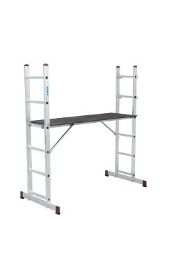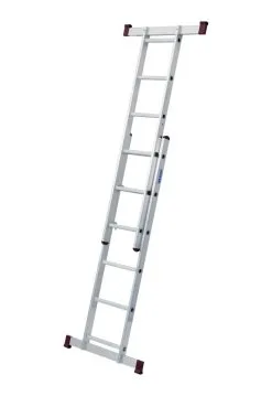 Du kan använda denna multifunktionella stegen av aluminium till en rad olika arbeten. Du kan använda stegen som en utskjutstege, enkelstege, trappstege, målarställning eller hantverksställning. Det går även bra att använda stegen i trappor eller annan ojämn yta. Stegen är uppdelad i 2 delar, var av alla delar har 6 steg och en längd på ca 1,60 meter som kan ge dig en arbetshöjd upp till ca 3,75 meter och stegen har en viktkapacitet på 150 kg. Stegen har även en vattentålig och halkskyddad plattform (147x50cm) för omvandling till hantverksställning, själva stegen är också rustad med starka halkskydd för stabil och säker användning.