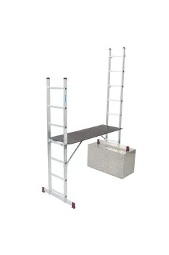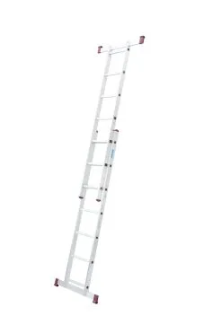 Du kan använda denna multifunktionella stegen av aluminium till en rad olika arbeten. Du kan använda stegen som en utskjutstege, enkelstege, trappstege eller hantverksställning. Det går även bra att använda stegen i trappor eller annan ojämn yta. Stegen är uppdelad i 2 delar, var av alla delar har 7 steg och en längd på ca 1,85 meter som kan ge dig en arbetshöjd upp till ca 4,05 meter och stegen har en viktkapacitet på 150 kg. Stegen har även en vattentålig och halkskyddad plattform (147x50cm) för omvandling till hantverksställning, själva stegen är också rustad med starka halkskydd för stabil och säker användning.