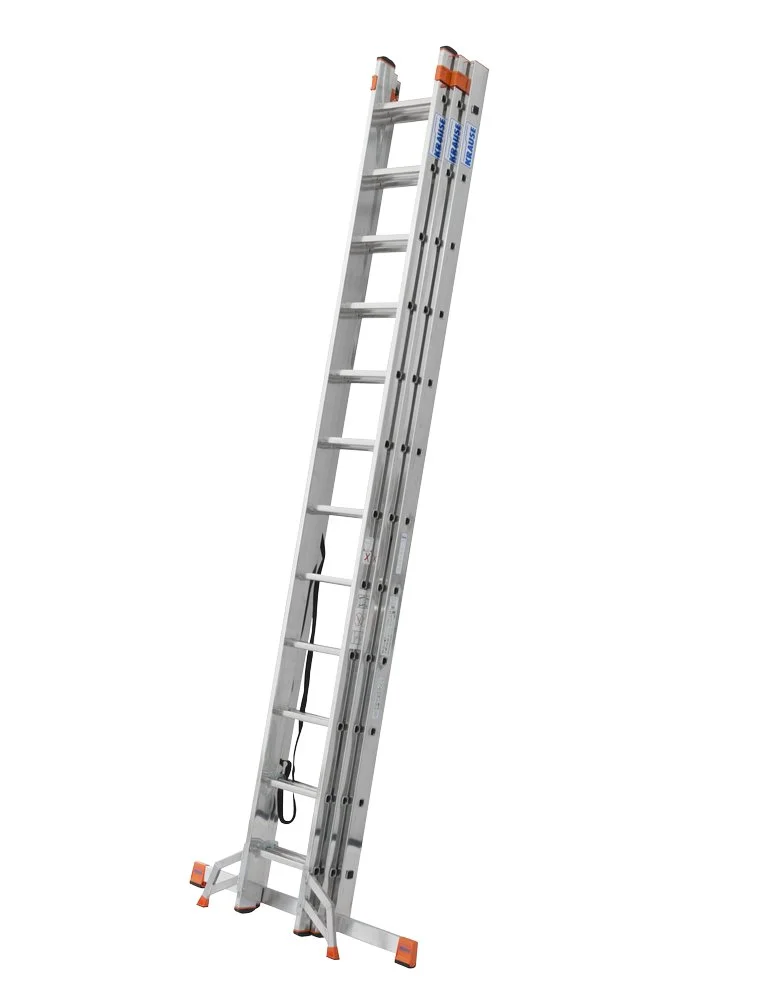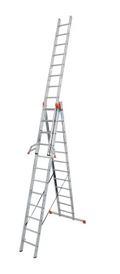 Du kan använda denna multifunktionella stegen av aluminium till en rad olika arbeten och med den praktiska trappfunktionen kan den användas i trappor och annan ojämn yta. Du kan använda stegen som en utskjutstege, enkelstege eller trappstege. Stegen är uppdelad i 3 delar, var av alla delar har 12 steg och en längd på 3,40 meter som kan ge dig en arbetshöjd upp till ca 9,30 meter och stegen har en viktkapacitet på 150 kg. Stegen har starka halkskydd som gör den stabil och säker.