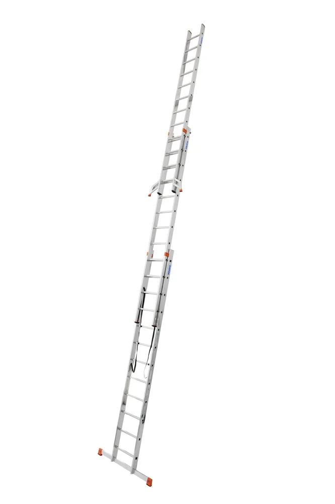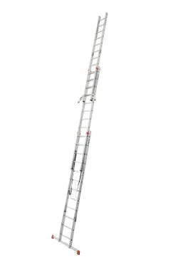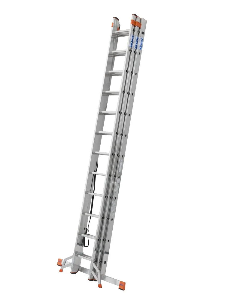 Du kan använda denna multifunktionella stegen av aluminium till en rad olika arbeten. Du kan använda stegen som en utskjutstege, enkelstege eller trappstege. Stegen är uppdelad i 3 delar, var av alla delar har 12 steg och en längd på 3,40 meter som kan ge dig en arbetshöjd upp till ca 9,30 meter och stegen har en viktkapacitet på 150 kg. Stegen har starka halkskydd som gör den stabil och säker.