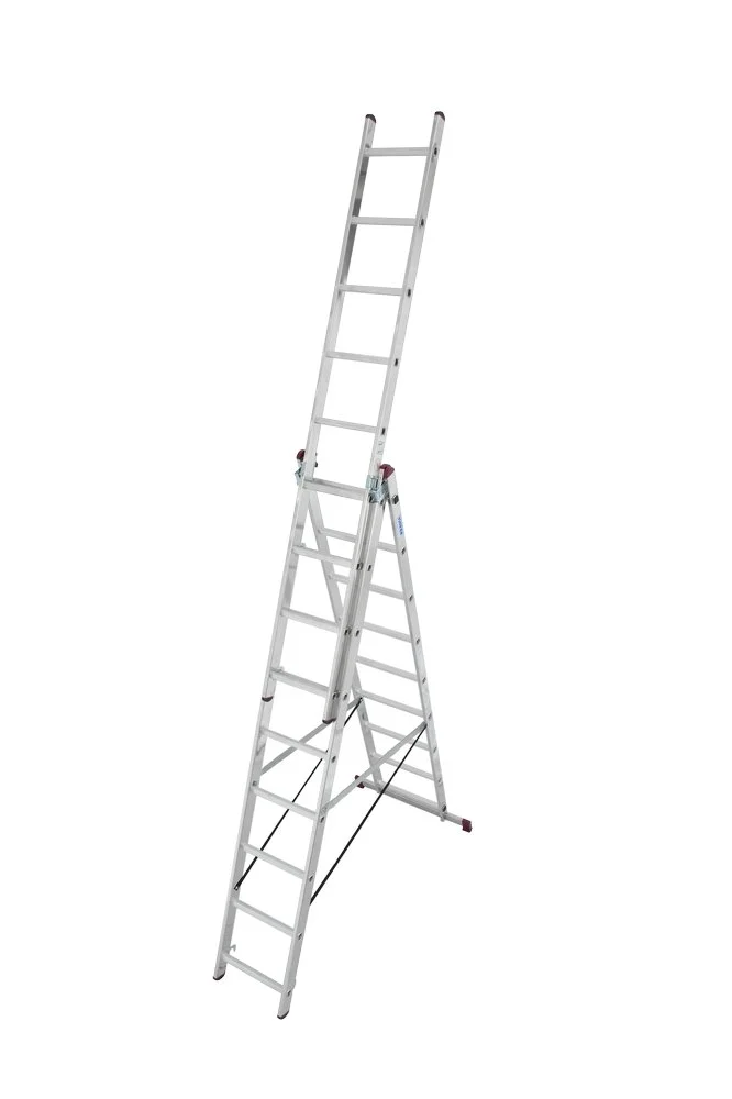 Du kan använda denna multifunktionella stegen av aluminium till en rad olika arbeten och med den praktiska trappfunktionen kan den användas i trappor och annan ojämn yta. Du kan använda stegen som en utskjutstege, enkelstege eller trappstege. Stegen är uppdelad i 3 delar, var av alla delar har 9 steg och en längd på 2,50 meter som kan ge dig en arbetshöjd upp till ca 6,20 meter och stegen har en viktkapacitet på 150 kg. Stegen har starka halkskydd som gör den stabil och säker.