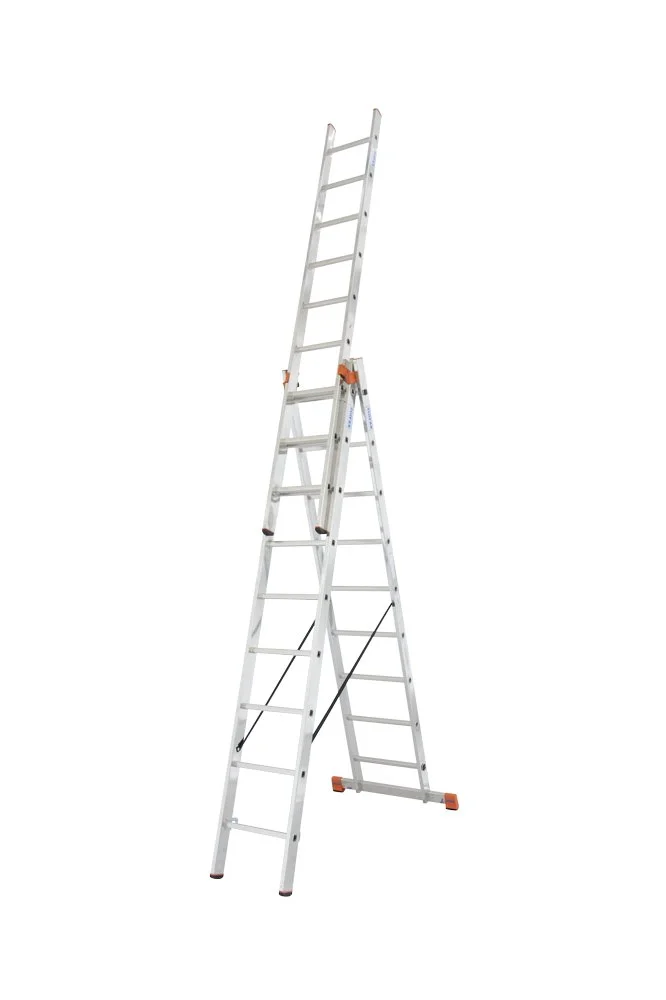 Du kan använda denna multifunktionella stegen av aluminium till en rad olika arbeten. Du kan använda stegen som en utskjutstege, enkelstege eller trappstege. Stegen är uppdelad i 3 delar, var av alla delar har 9 steg och en längd på 2,60 meter som kan ge dig en arbetshöjd upp till ca 6,85 meter och stegen har en viktkapacitet på 150 kg. Stegen har starka halkskydd som gör den stabil och säker.