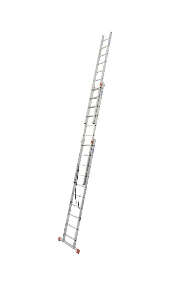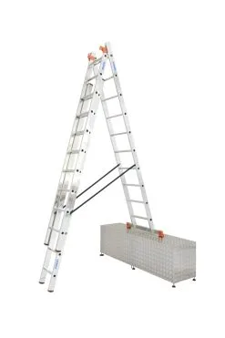 Du kan använda denna multifunktionella stegen av aluminium till en rad olika arbeten och med den praktiska trappfunktionen kan den användas i trappor och annan ojämn yta. Du kan använda stegen som en utskjutstege, enkelstege eller trappstege. Stegen är uppdelad i 3 delar, var av alla delar har 10 steg och en längd på 2,85 meter som kan ge dig en arbetshöjd upp till ca 7,65 meter och stegen har en viktkapacitet på 150 kg. Stegen har starka halkskydd som gör den stabil och säker.