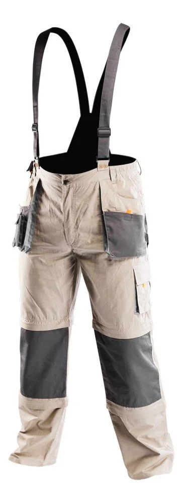 Uppfyller EN ISO 13688:2013. 100% bomull, 180 g/m2, förstärkta områden utsätts för slitage, avtagbara ben under och ovanför knäna, löstagbart ok (sex alternativ: långa arbetsbyxor med hängslen, 3/4 längd, shorts, arbetsbyxor med långa, 3/4 och korta ben), CE-certifikat.