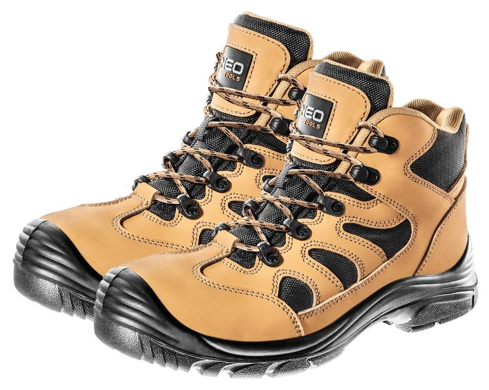 Skorna har inlägg som skyddar mot stickhål underifrån och även antistatiska inlägg. Vattentäthet förbättrar arbetskomforten under svåra förhållanden. Produkten lämpar sig för arbete i butiker, på byggarbetsplatser, mekaniska verkstäder och platser som kräver att skyddsskor med en viss skyddsklass används. Nubuckskinn, vattenavvisande och utan metalldelar.