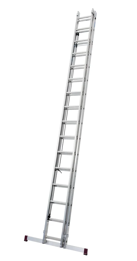 Denna stabila stege av aluminium har ett rep system som gör det mycket lättare att fälla ut och fälla ihop stegen med minimalt ansträngande. Stegen har en vikt på 22 kg och en viktkapacitet på 150 kg. Stegen är uppdelad i två delar varav varje del har 16 steg och en längd på ca 4,5 meter, vilket gör så att när stegen är utfälld kan du få en arbetshöjd på ca 8,56 meter. Stegen har starka halkskydd som gör den stabil och säker för användning.