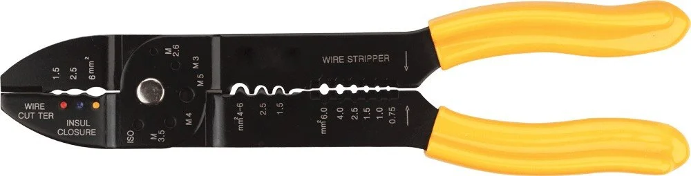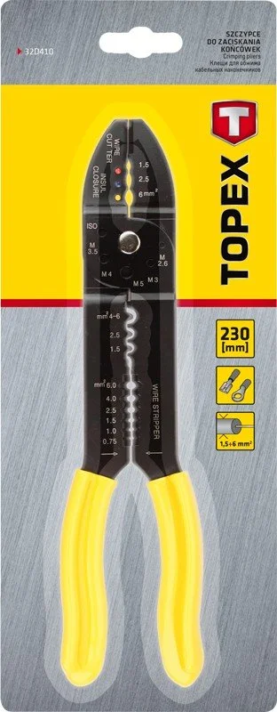 Crimptång för isolerade och oisolerade terminaler. Designad för kablar med diameter 1,5 – 6 mm². Ergonomiskt grepp för hög komfort.