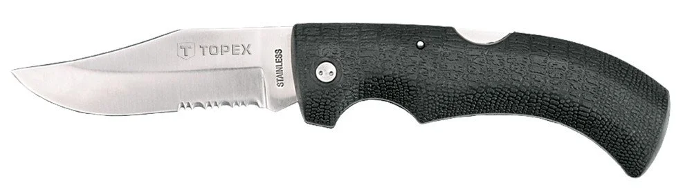Handtag och blad tillverkat i högkvalitativt rostfritt stål. Bladlås för ökad säkerhet. Den ergonomiska formen gör att kniven ligger stabilt i handen och inte glider iväg.