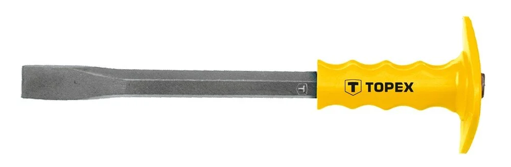 Huggmejseln är tillverkad i kraftigt specialstål. Välprofilierat grepp gör det enklare att hålla verktyget i handen och skyddar från slag.