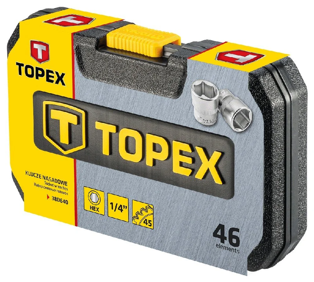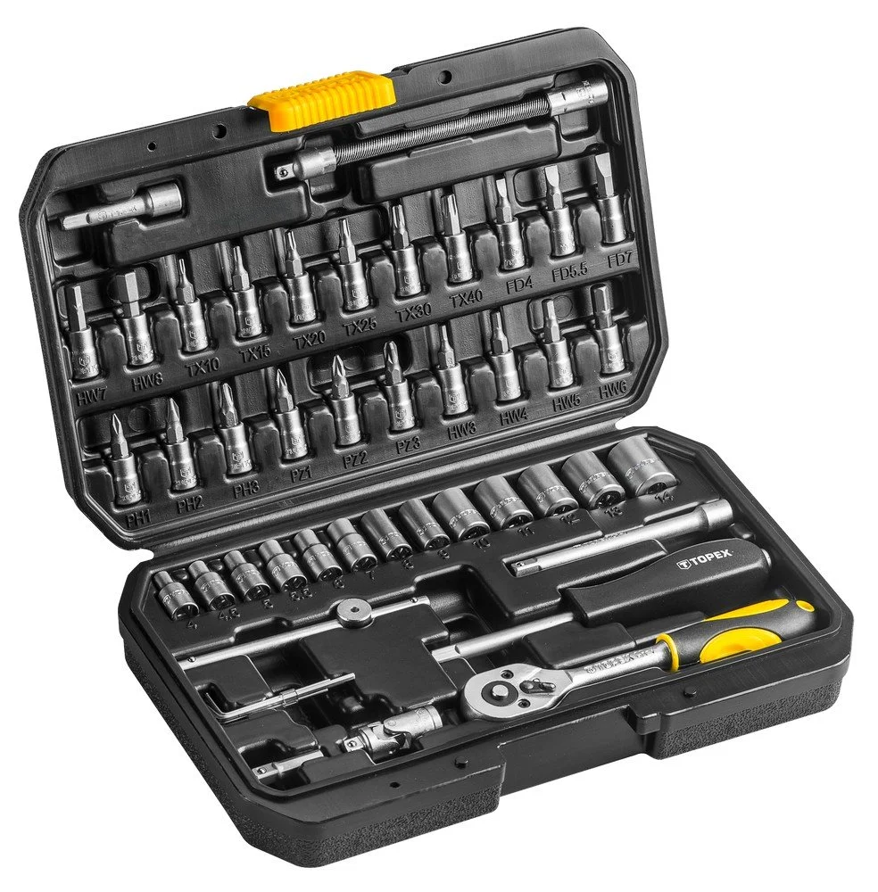 Sats om 46 delar sorterade i en smidig plastlåda. Samtliga delar är tillverkade i högkvalitativt CrV-stål.