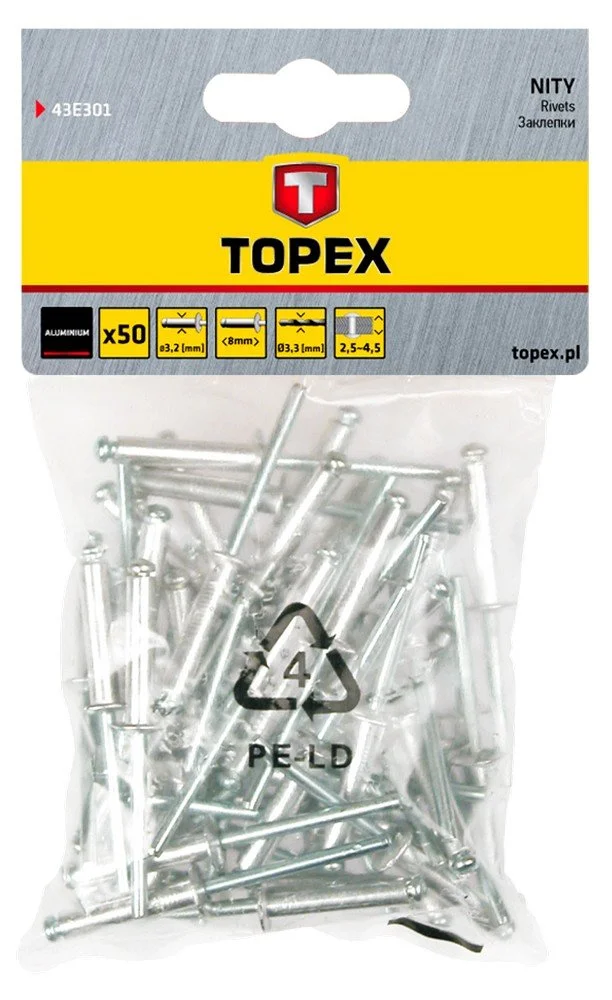 Tillverkade i aluminium. Nitarna ger stabila sammanfogningar i metall, trä, plast och läder.