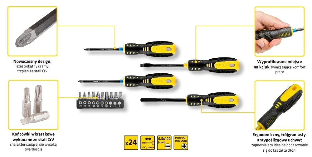 - Torx T10, T15, T20, T25, T27, T30, T40