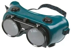Svetsglasögon med justerbar rem och uppfällbara glas. CE-märkta.