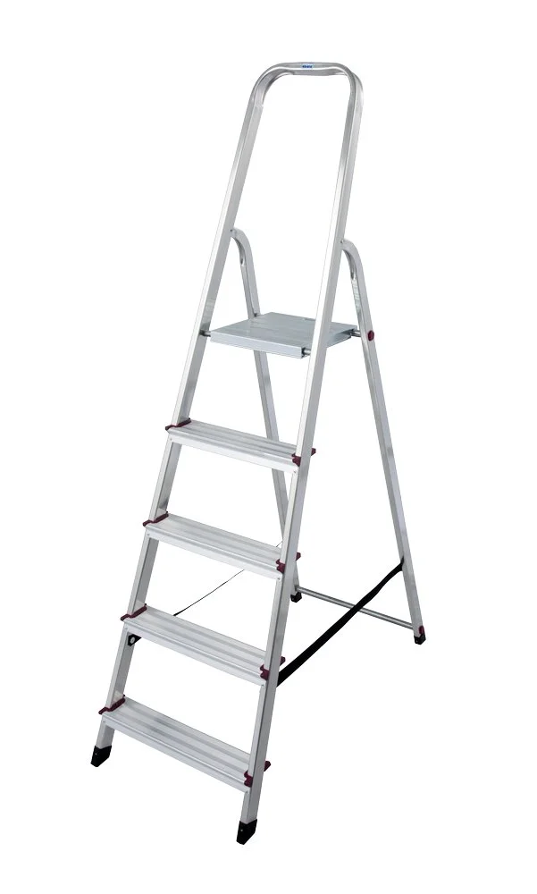 Denna kompakta aluminium stegen är användbar för en rad olika inomhusbruk. Lätt att förvara och inte allt för jobbig att ta fram med en vikt på bara 4,3 kg. Stegen har 5 steg och en längd på 1,0 meter som kan ge dig en åtkomlig höjd på ca 3,0 meter och stegen har en viktkapacitet på 150 kg. Stegen har ett starkt halkskydd på alla benen för ett stabilt och riskfritt arbete.