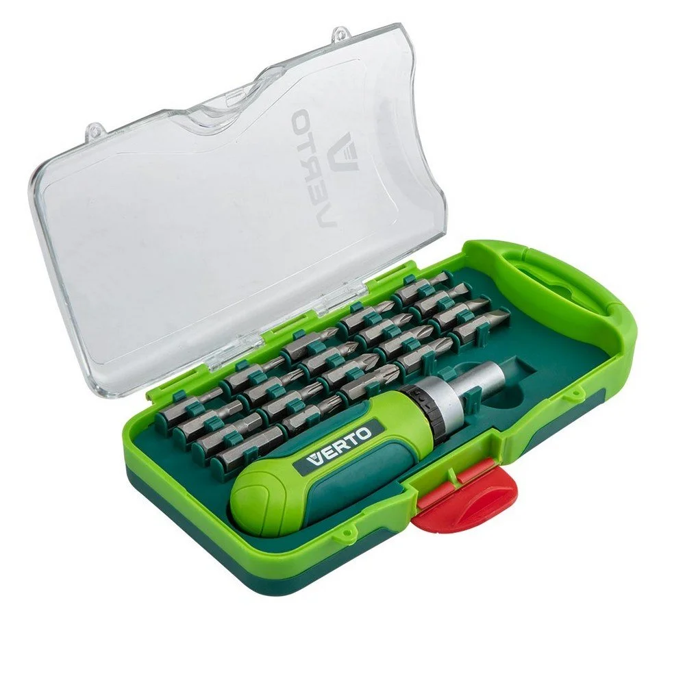 Ergonomisk bitsmejsel med bits i praktiskt fodral. Lämpligt för konstruktionsarbeten.