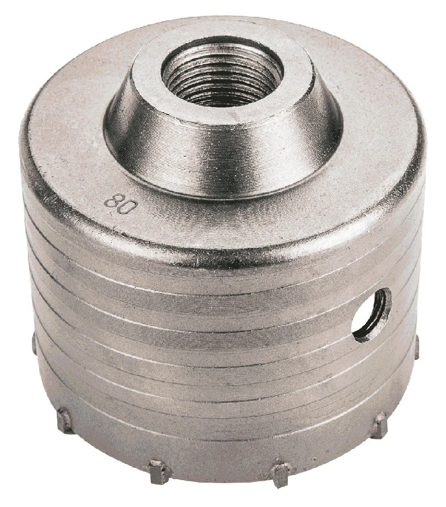 Hålsåg av solid hårdmetall gör det möjligt att skära hål för kopplingsdosor i väggar av tegel och betong. Blad med slipkorn av sintrad hårdmetall med förbättrad motståndskraft mot nötning möjliggör längre användning av hålsågen. 65 x 50 mm.