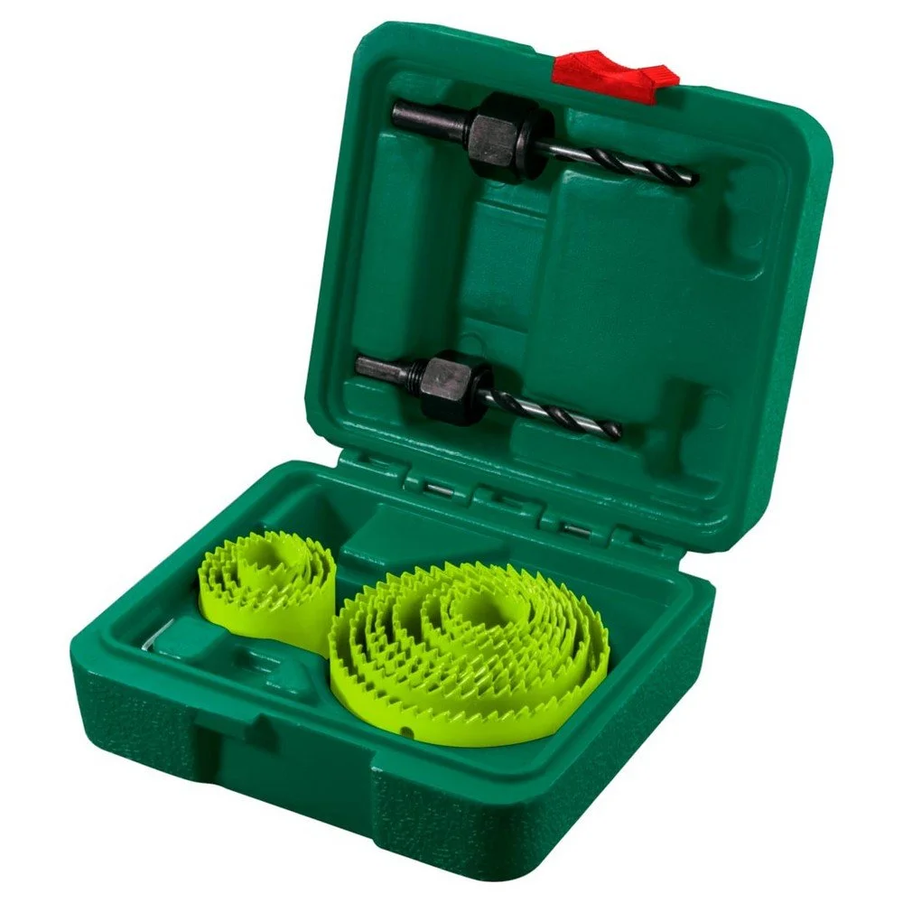 Hålssågssats med 14 delar, från 19-76 mm. Praktisk förvaringslåda ingår.