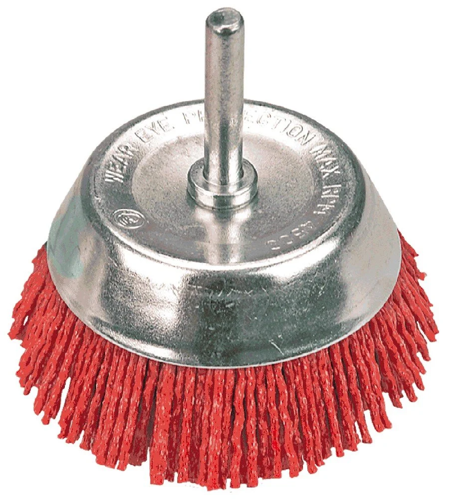 Slipmaterial inuti borstens nylontrådar möjliggör effektiv, men ändå skonsam borttagning av smuts, färgbeläggningar och rost.