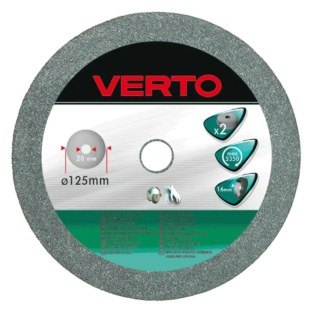 Skivorna används för att slipa metallföremål, knivar och andra sliparbeten. 125 x 20 mm / 16 mm, 2 st, adaptrar: 20 x 16 mm, 16 x 12,7 mm, 30 x 25,4 mm.