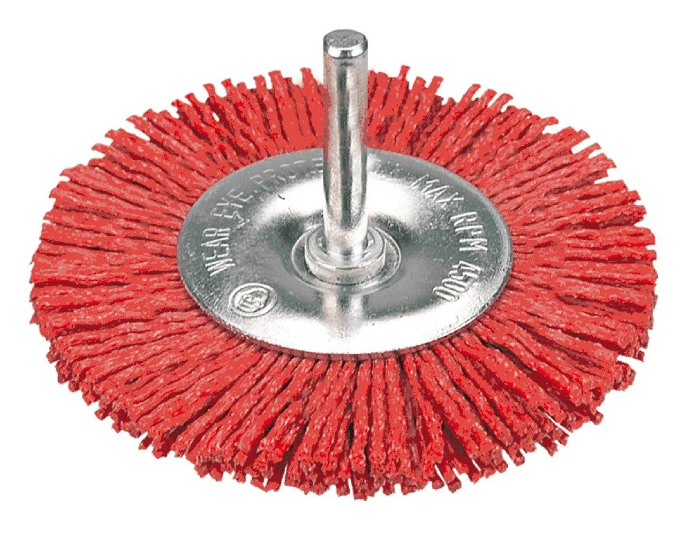 Slipmaterial inuti borstens nylontrådar möjliggör effektiv, men ändå skonsam borttagning av smuts, färgbeläggningar och rost.